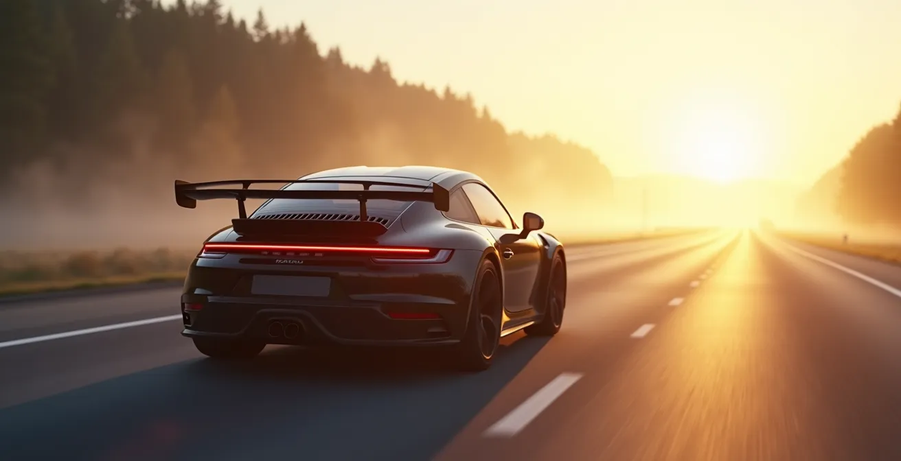 Die spürbare Wirkung eines Spoilers beginnt laut diversen Messungen erst bei Geschwindigkeiten jenseits von 80 bis 150 km/h. Im Stadtverkehr ist er aerodynamisch praktisch wirkungslos und dient nur der Optik. Auf der Autobahn hingegen kann ein effektiv gestalteter Flügel enormen Anpressdruck erzeugen. So erreicht beispielsweise der Porsche 911 Turbo S durch seine adaptive Aerodynamik einen maximalen Anpressdruck von bis zu 170 Kilogramm. Dieser zusätzliche Druck auf der Hinterachse verbessert die Traktion und Stabilität dramatisch, kostet aber unweigerlich Endgeschwindigkeit. Je steiler der Flügel angestellt ist und je größer seine Fläche, desto höher der Luftwiderstand.