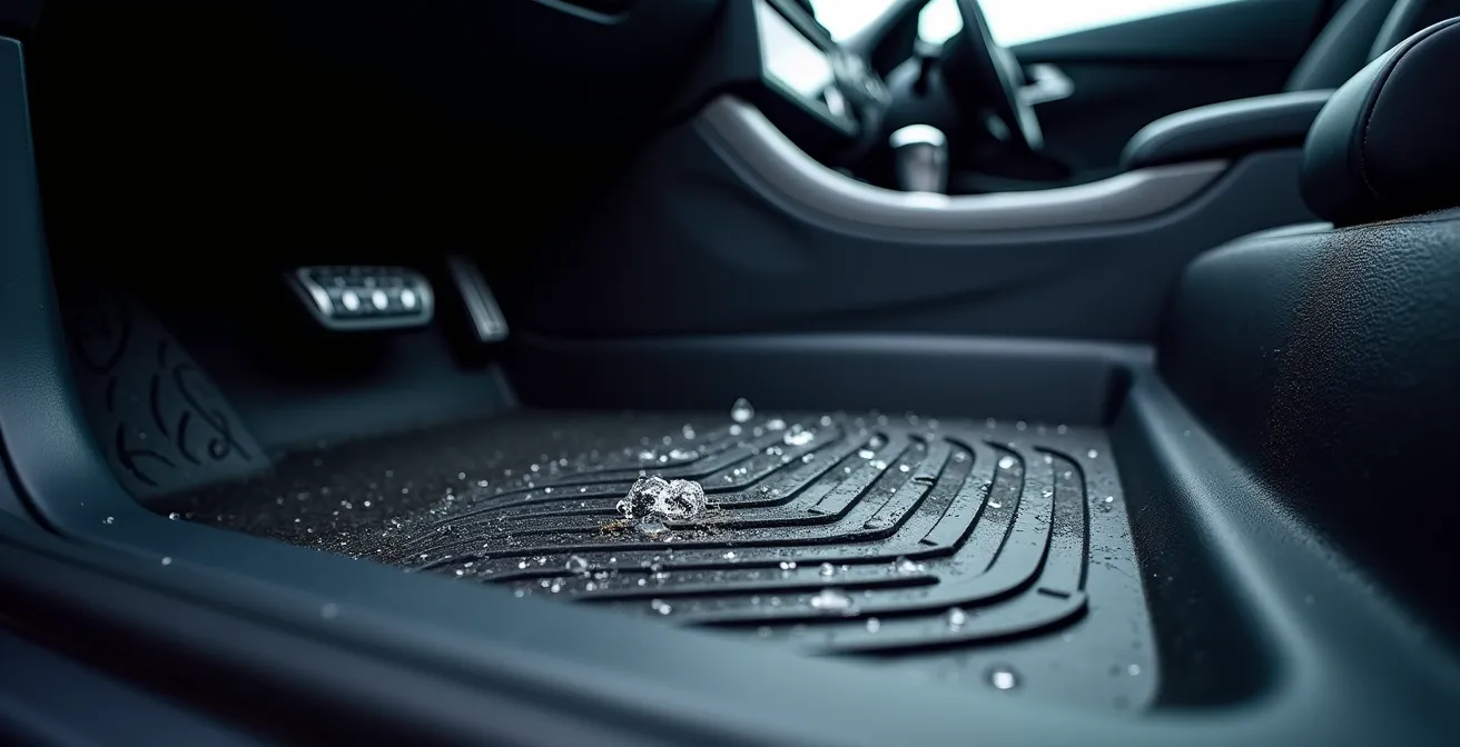 Aus meiner täglichen Praxis als Fahrzeugaufbereiter weiß ich: Der größte Feind des Werterhalts ist nicht der sichtbare Schmutz, sondern die unsichtbare, dauerhafte Feuchtigkeit, die tief in den Fahrzeugboden eindringt. Sie schafft ein ideales Mikroklima für Schimmelsporen und, noch schlimmer, sie fördert die Korrosion des Bodenblechs von innen nach außen. Viele Ratgeber konzentrieren sich auf die äußere Pflege, doch die wahre Schlacht um die Substanz Ihres Fahrzeugs wird im Fußraum geschlagen. Die Wahl der Fußmatte ist daher keine Frage des Geschmacks, sondern eine strategische Entscheidung für den Substanzschutz.